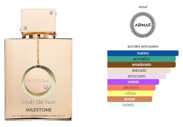 Armaf Club de Nuit Milestone es una fragancia árabe que se ha posicionado como una excelente alternativa de alta calidad a perfumes de diseñador de gran calidad. Su perfil olfativo de notas marinas, bergamota y grosellas negras a menudo ha sido comparado con el del famoso Millesime Imperial de Creed, pero con un toque distintivo que lo hace único y muy versátil.
