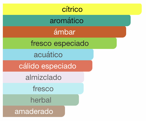 🍋 Cítrico – 🪵 Amaderado Ahumado – 💧 Fresco – 🌿 Aromático/Herbal – 🌲 Resinoso