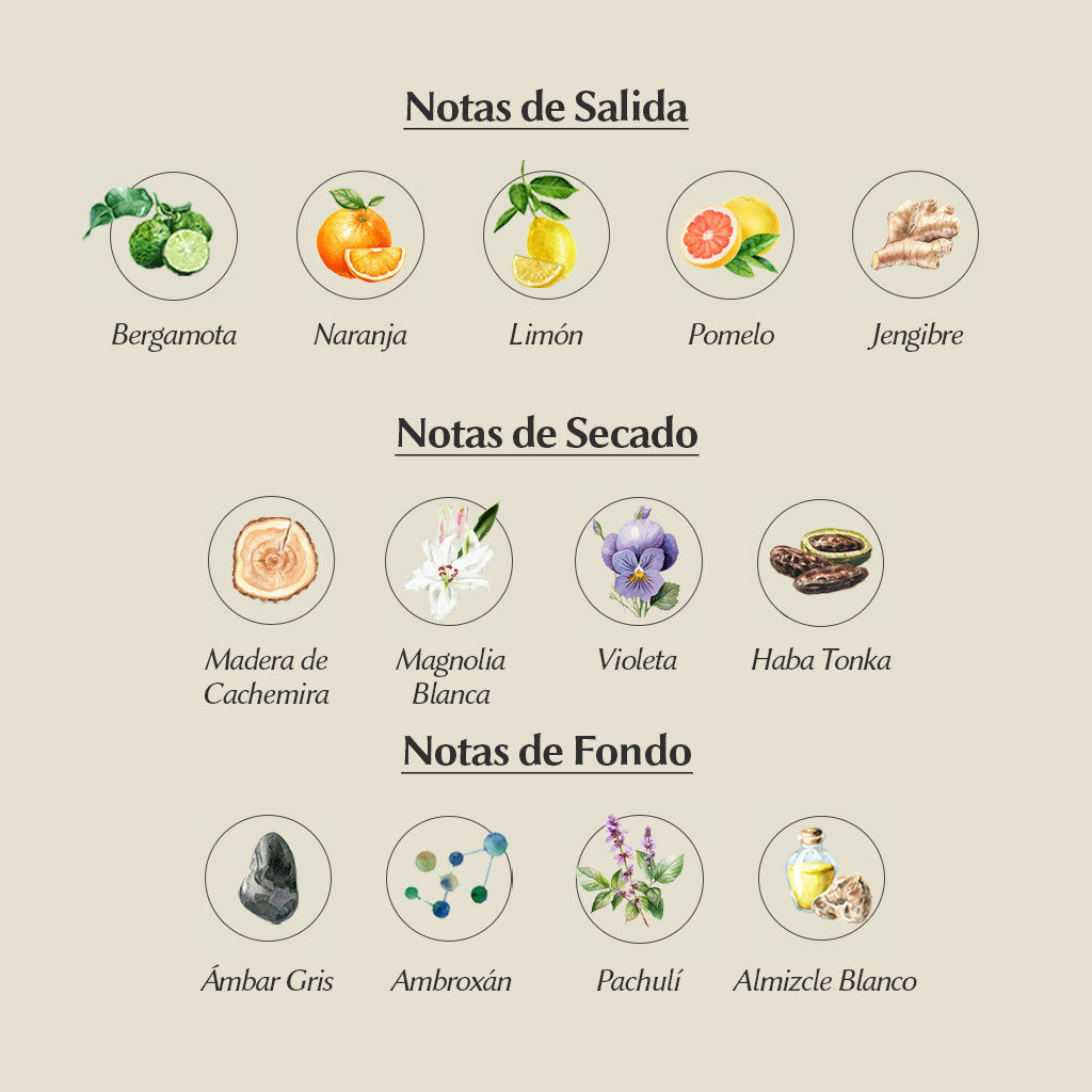 🌿 Aromático – 🍃 Fresco Especiado – 🍋 Cítrico – 🌿 Verde – 🪵 Amaderado